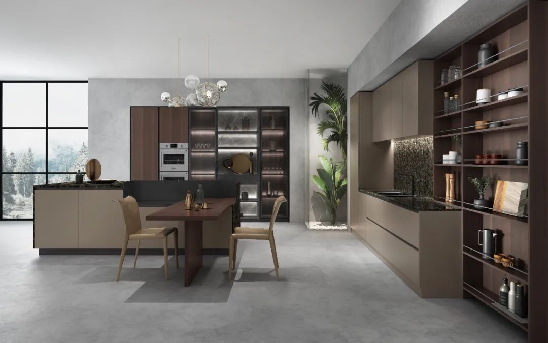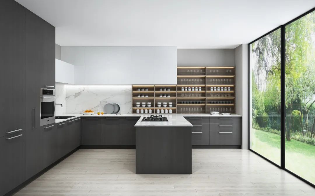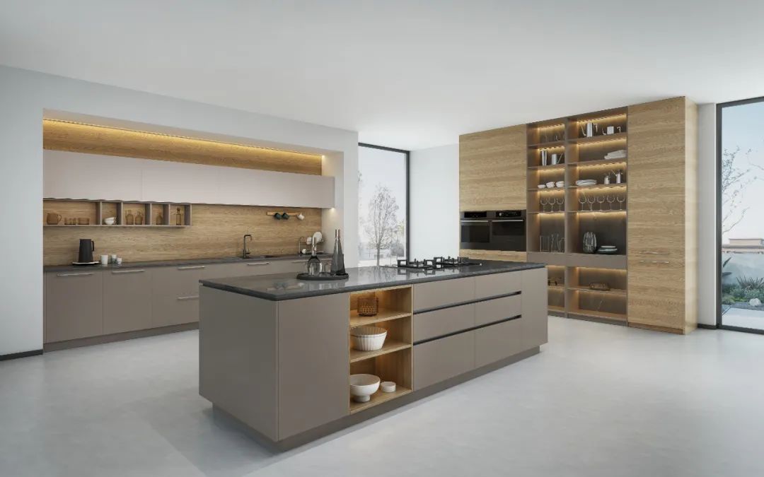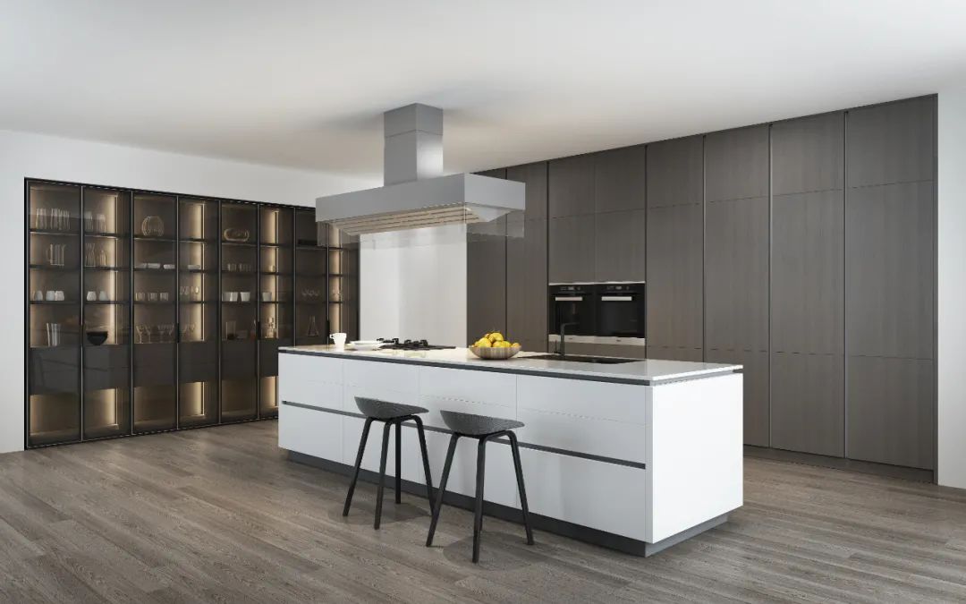 島臺設計為功能五金的運用留足余地,收納寶,組合拉籃、碗碟抽屜……各種收納解決方案便可以任意挑選,極大增強了島臺的實用性能。