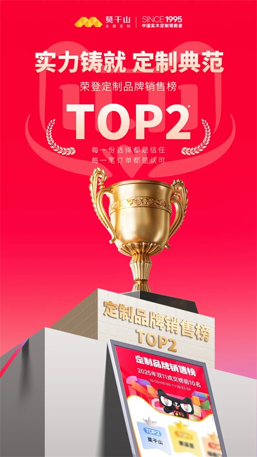 • 實至名歸!莫干山全屋定制斬獲天貓定制行業品牌榜亞軍,實木定制賽道實力出圈