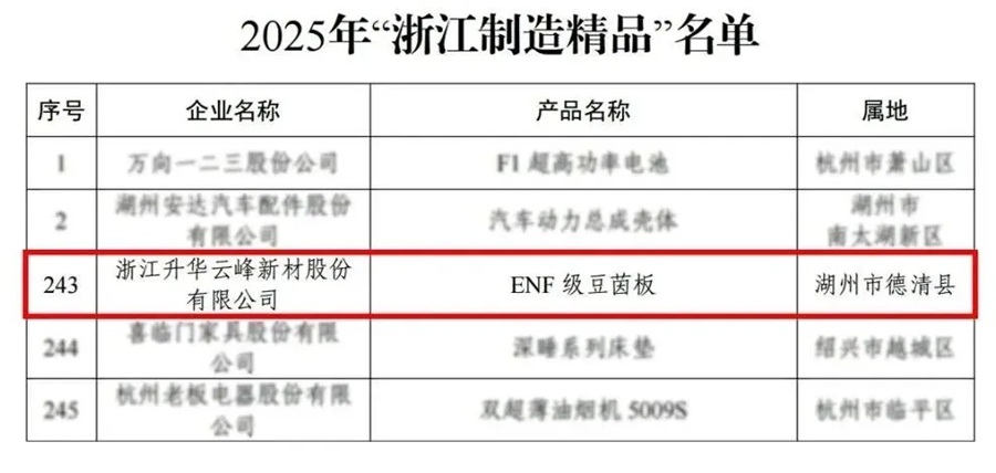 • 實力加冕!莫干山ENF級豆茵板入選 “浙江制造精品”,以植物源技術領跑行業